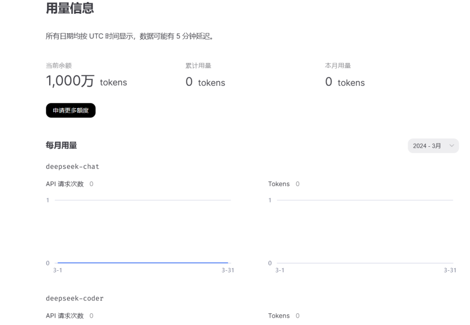 每个用户可免费拥有1000万tokens,可申请更多额度