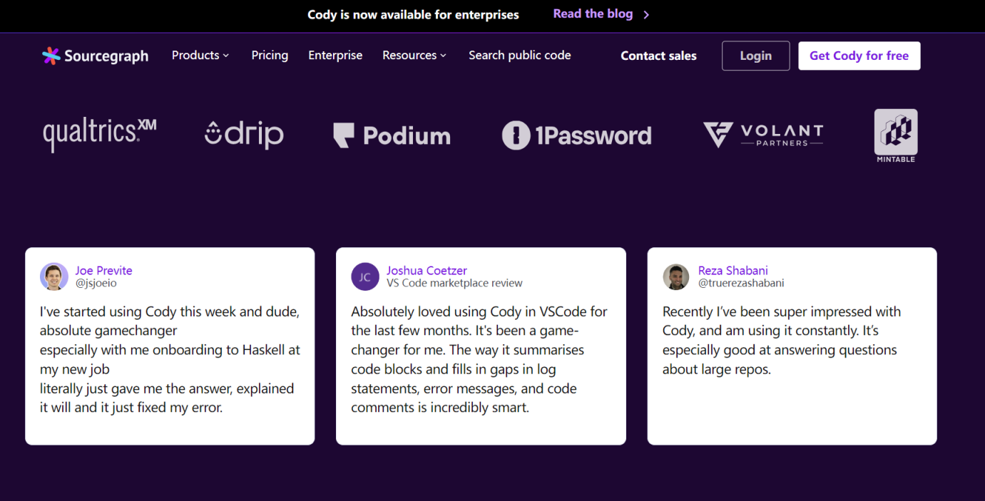 Cody是由代码搜索浏览工具SourceGraph推出的,它使用了SourceGraph的代码图和大语言模型(LLMs)组合的方式来生成代码。这里再说明一下Sourcegraph 是什么,Sourcegraph 是一个代码智能平台,可以深入了解你的代码,无论代码有多大或托管在何处。