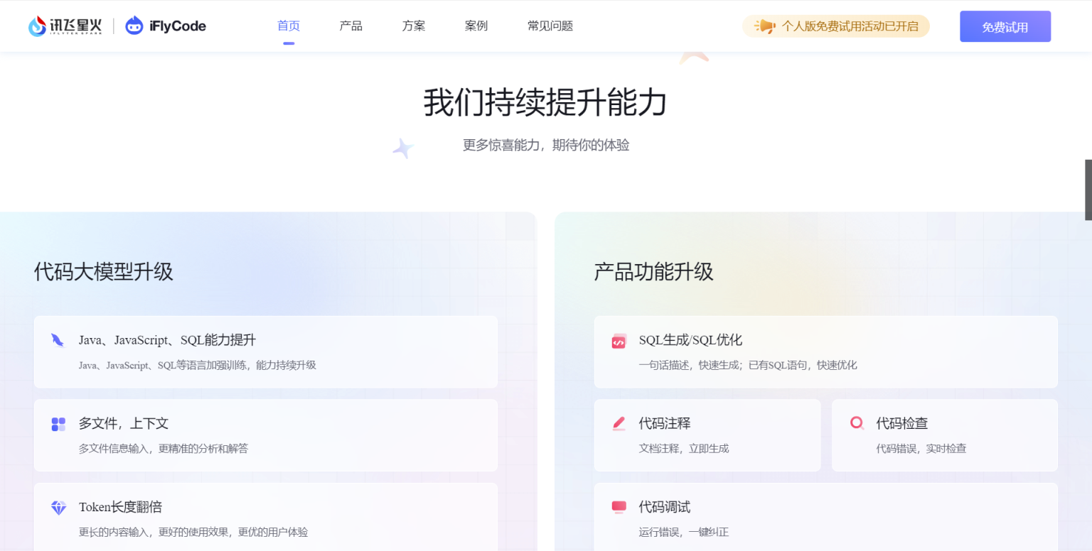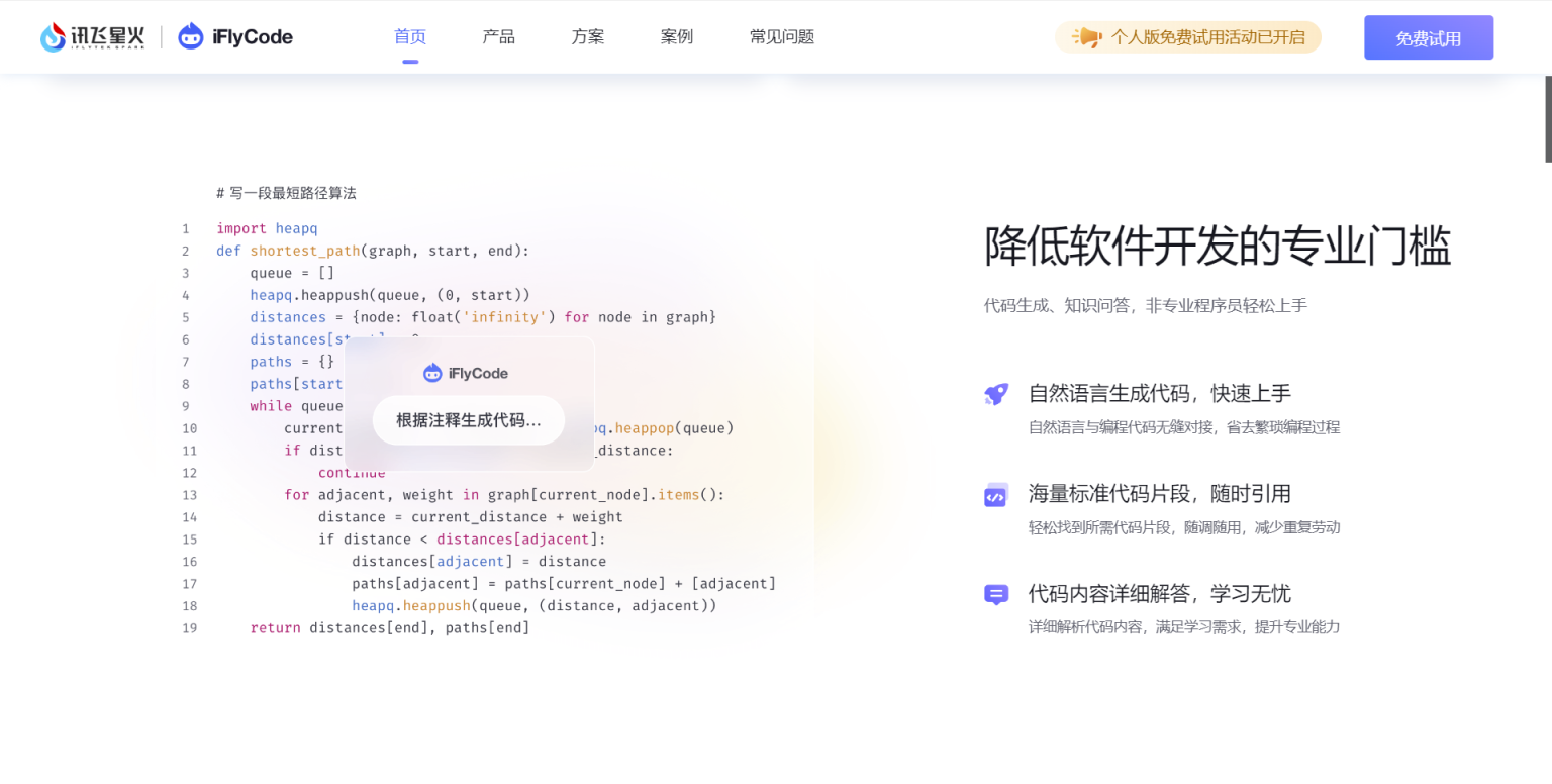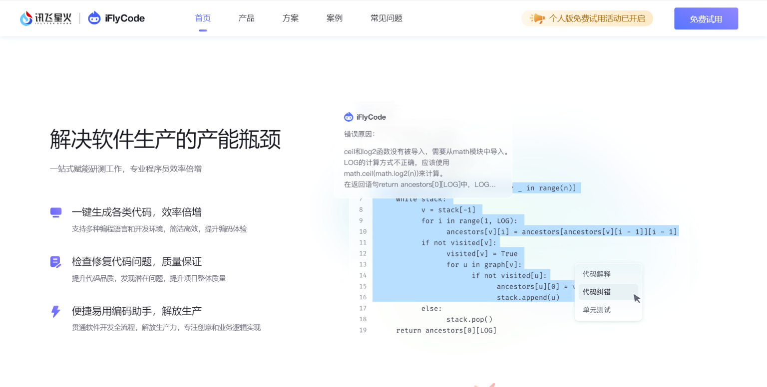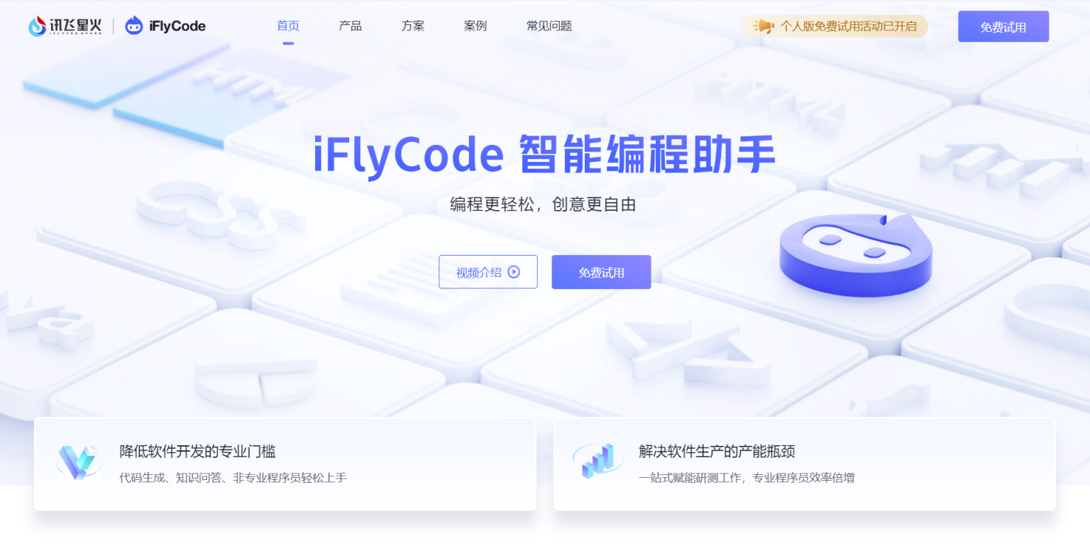 iFlyCode是科大讯飞开发的一款智能编程助手,它结合了自然语言处理和机器学习技术,具备代码生成、代码补齐、代码纠错、代码解释和单元测试生成等多项功能。