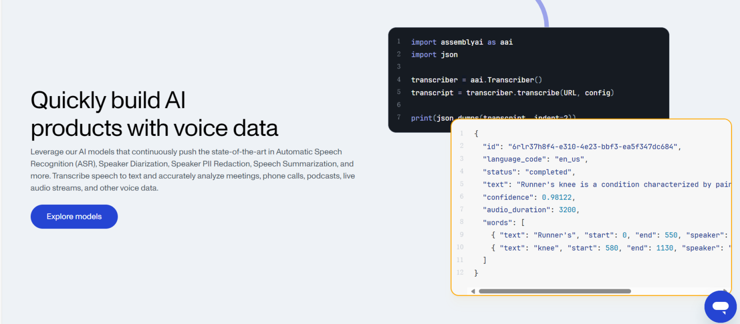 1. 开发者:AssemblyAI提供了一个平台,使得开发者能够轻松地构建和集成语音识别功能到他们的AI产品中。这对于希望快速实现原型设计或产品化的创新者来说是非常有用的。