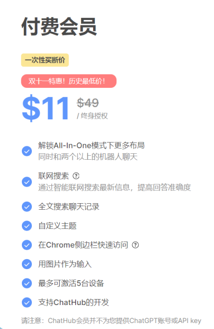 关于 ChatHub 的费用