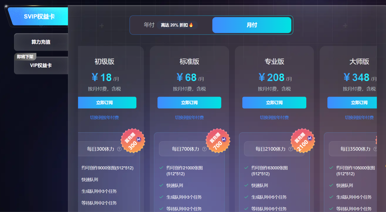 免费版:用户注册后每日可免费生成150张图片。