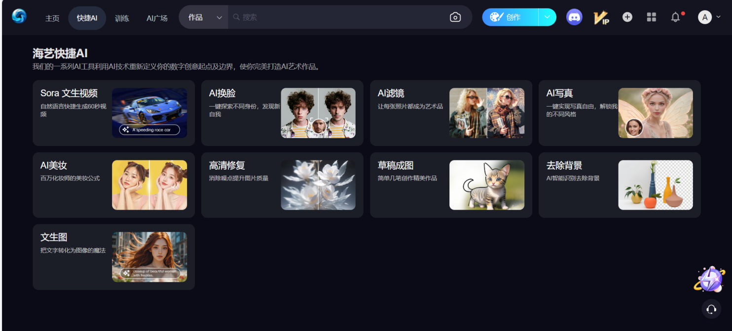 SeaArt AI还提供了AI滤镜、高清修复、去除背景等功能,可以帮助用户改变图片质量。