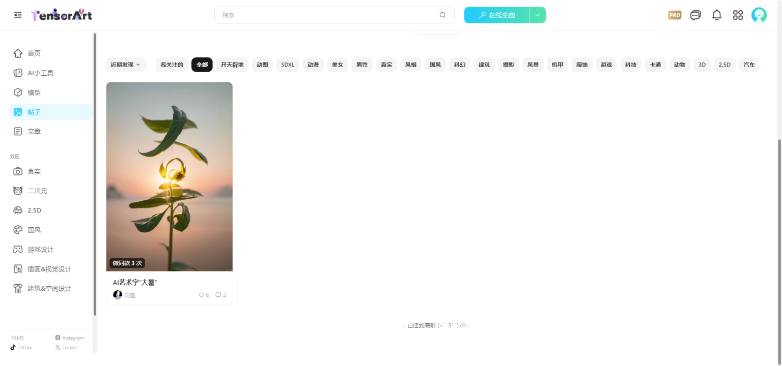 一键分享社区:用户可以将自己生成的图片作品一键分享到TusiArt的社区中,与其他用户分享艺术灵感和成果。社区内的作品还能一键做同款,方便用户学习和模仿他人的创作风格。这种分享机制促进了用户之间的互动和交流,提升了创作氛围和活跃度。