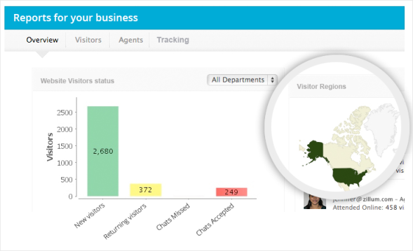 通过报表和访客的反馈数据优化客户的网站体验。发现客户支持的不足之处,提升代理绩效。