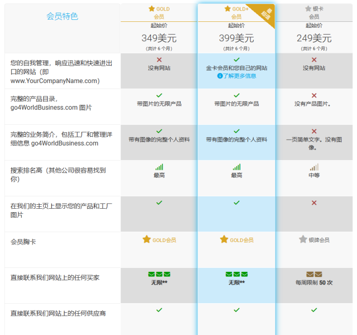 Go4WorldBusiness提供了会员服务,分为银卡会员和金卡会员。