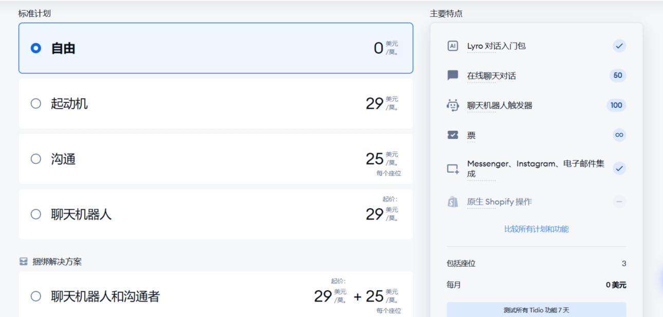 免费版:包含Lyro 对话入门包、在线聊天对话、聊天机器人触发器、Messenger、Instagram、电子邮件集成等基础功能。