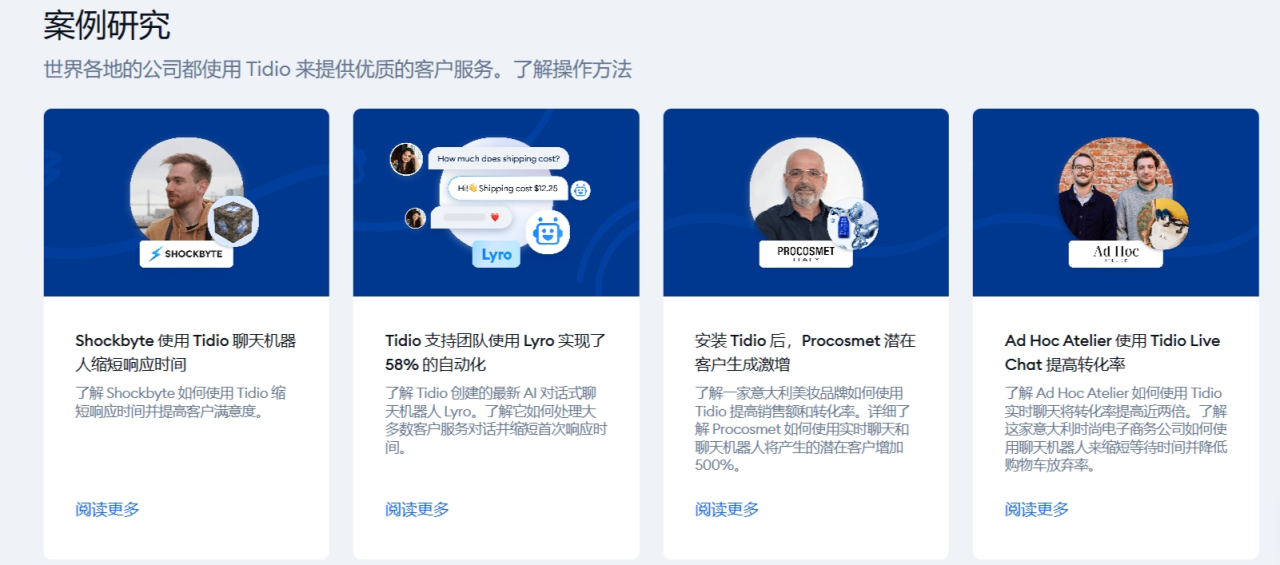 TIDIO提高客户满意度、减少等待时间、辅助销售等。