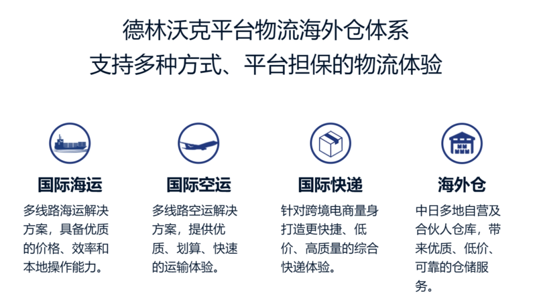 提供拼箱&整柜、海派、空派、申报、清关、境外转运等服务,在中国广东、香港、苏州、杭州、威海、上海等地建有国内集货仓; 海外仓服务:承接日本国内的代发货业务,日本电商小包、商业件、日本COD、FBA入库等海运空运业务。
