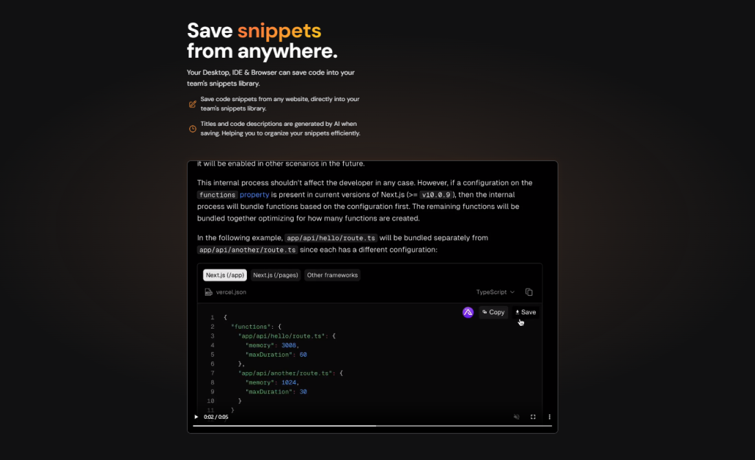 5.从任何地方保存代码片段:桌面、IDE 和浏览器可以将代码保存到团队的代码段库中。