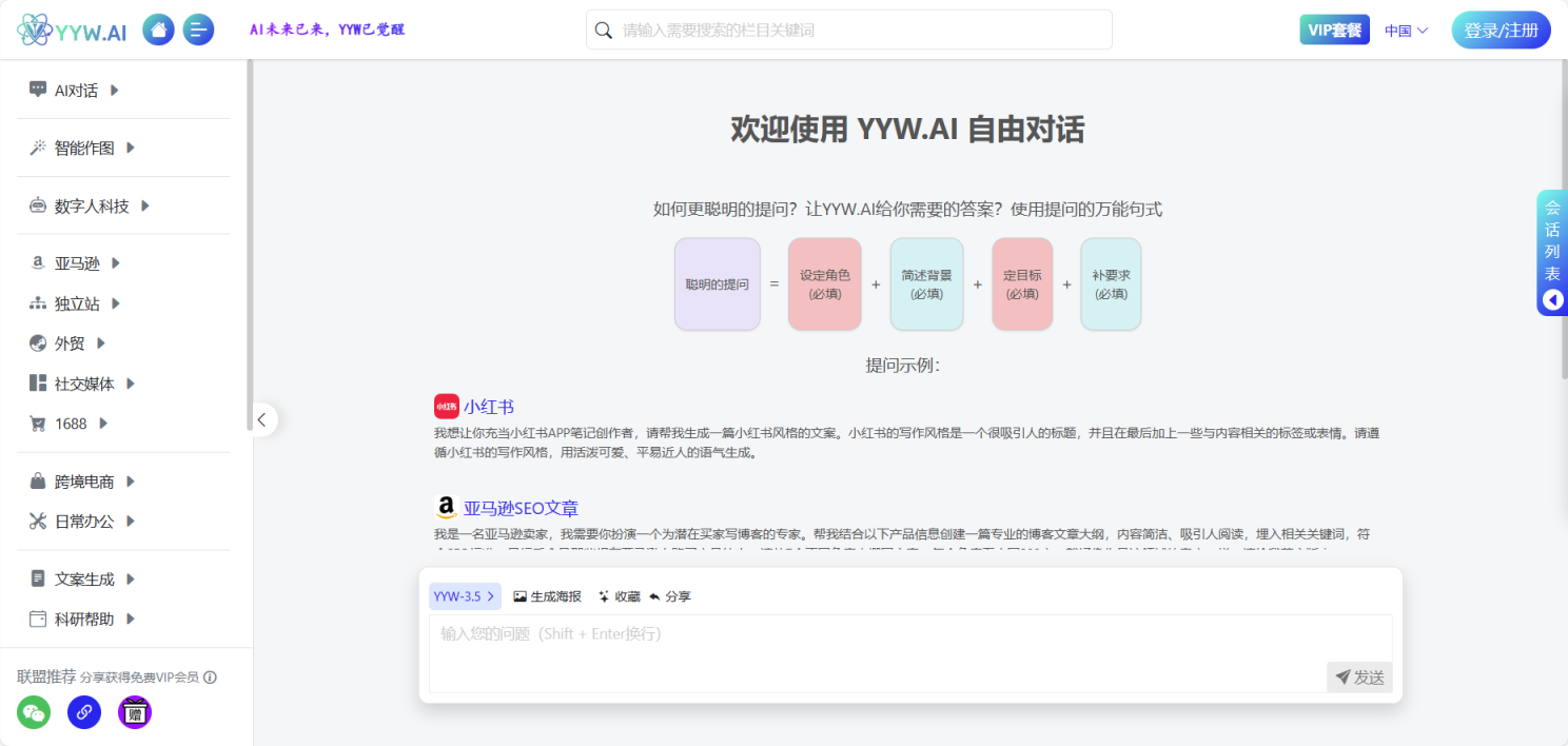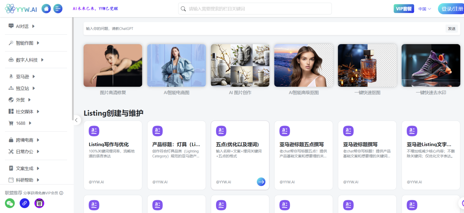 跨境电商内容支持:YYW.ai 可能为跨境电商提供特定的内容生成工具,帮助商家创建适合不同电商平台和国际市场的内容。