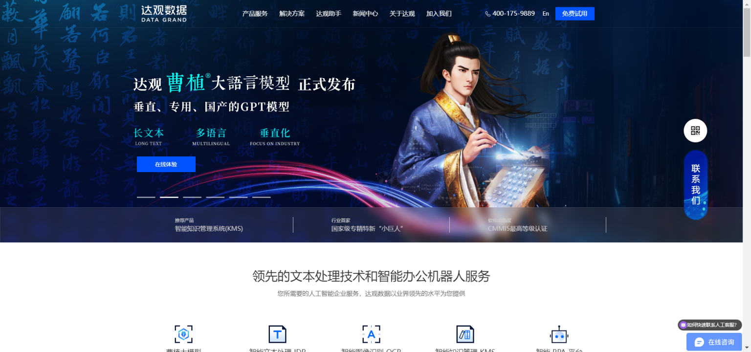 达观数据曹植支持免费试用