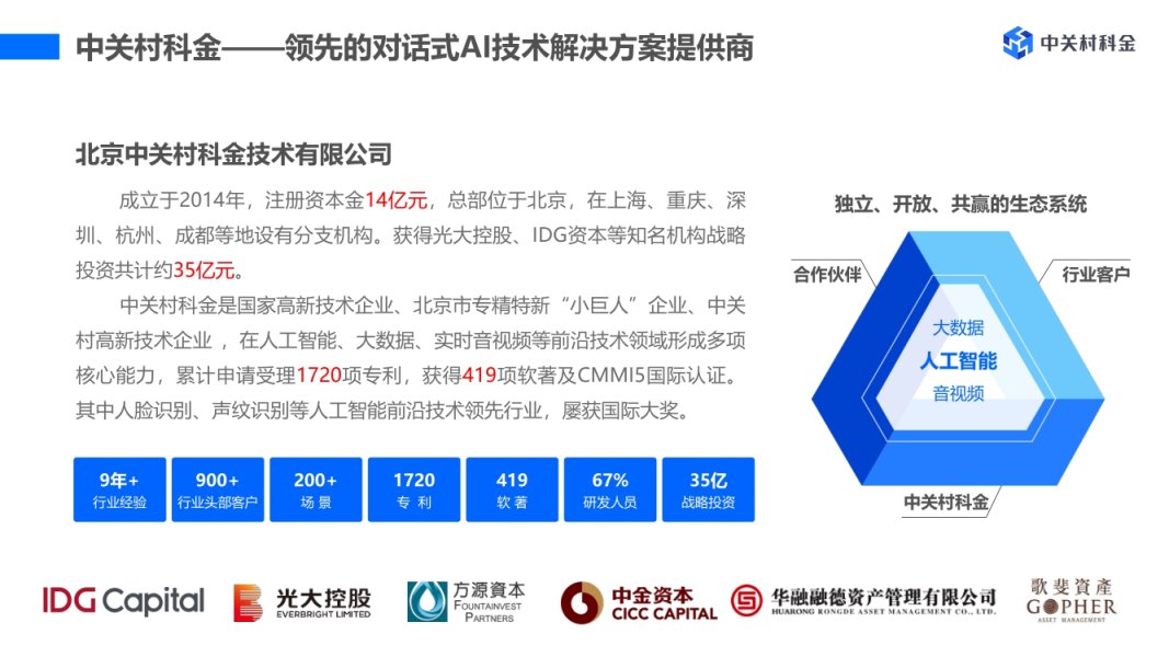 作为领先的对话式AI技术解决方案提供商,中关村科金致力于通过对话式AI技术构建人机协同的新型生产关系,帮助企业打造“超级员工”,实现具有分析决策能力的强人工智能应用。