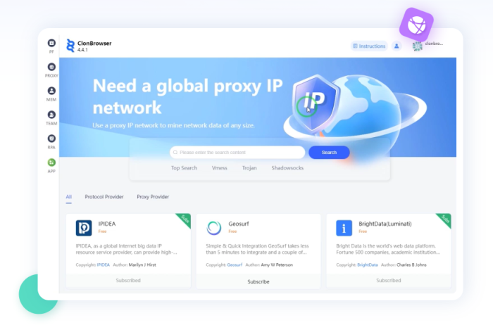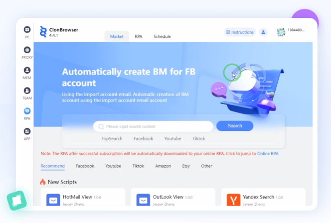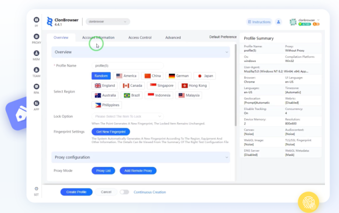 ClonBrowser是一款专注于防检测的浏览器软件,旨在创建难以被跟踪和识别的浏览器配置文件。它广泛应用于互联网营销、安全和隐私、数据挖掘以及SaaS服务等多个领域的广告比较。多种高级指纹选项和网络代理插件保护用户的隐私和安全、强大的RPA自动化工具解放双手,帮助您安全、稳定且高效地完成多账号资产管理。