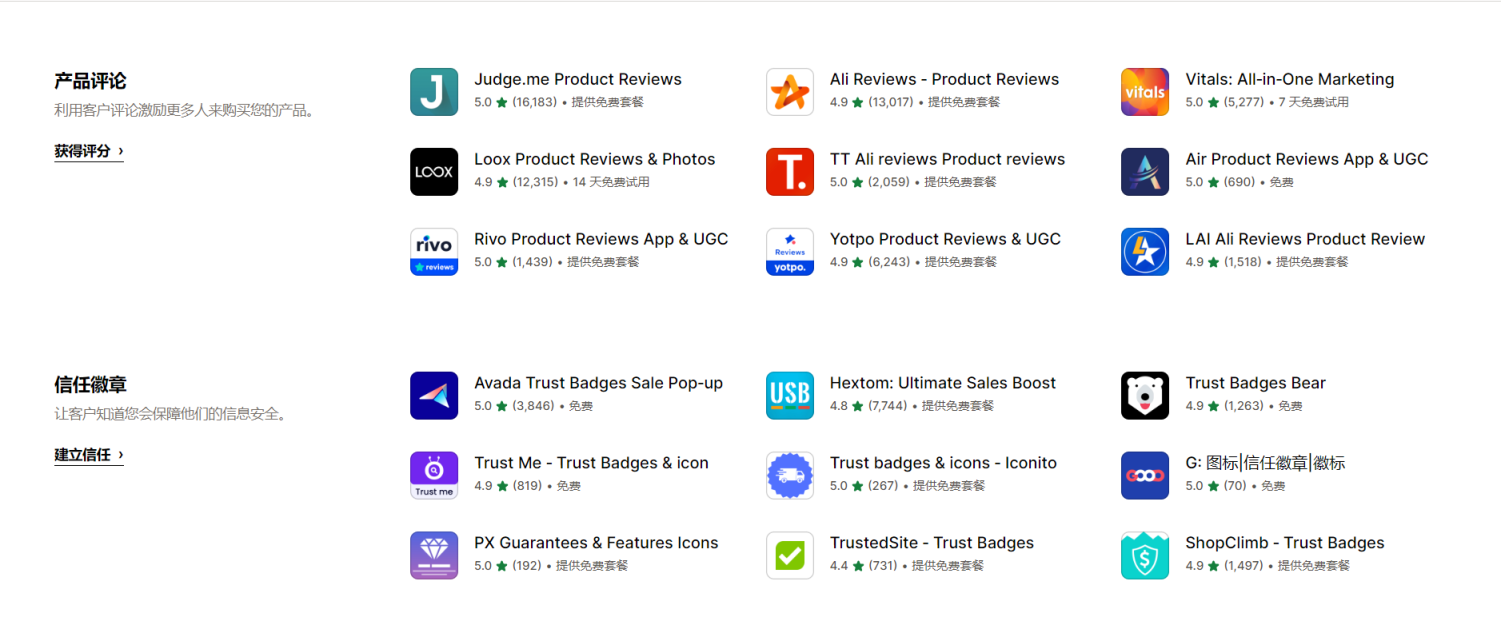 与Shopify相关的产品或服务列表:查看