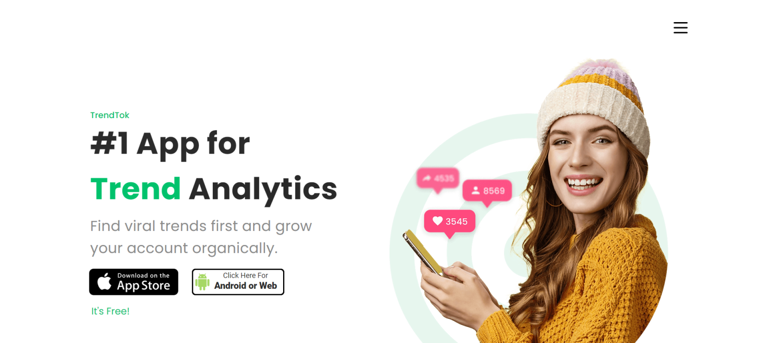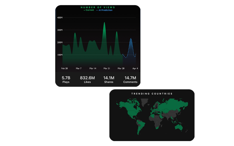TrendTok 的趋势分析功能使用户能够发现在其附近、在其领域、以及由其喜欢的创作者创作的正在走红的趋势。这有助于用户在创建内容时更好地把握时机,与病毒性趋势一同增长,提高他们的可见性,吸引更多关注者,并促进账户的增长。