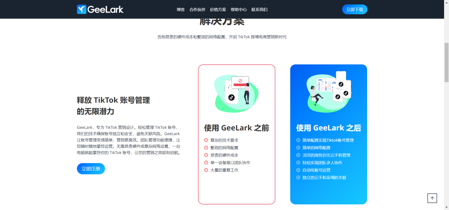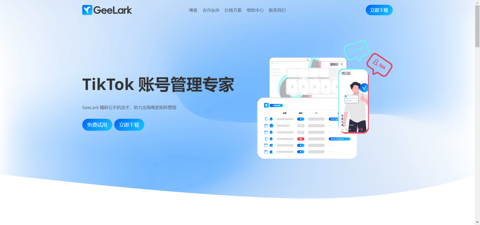 初创企业与小型企业:资源有限但希望在国际市场上有所作为的初创企业和小型企业。GeeLark的灵活套餐和低成本解决方案,使得这些企业能够以较低的成本,实现TikTok营销的初步布局和试水。