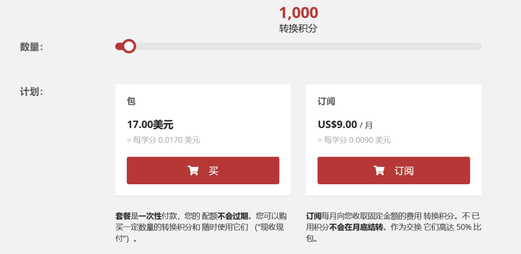 转换所需的时间越长,消耗的资源就越多,成本也就越高 是的。我们的套餐 订阅通常每分钟的转换时间消耗一个积分。