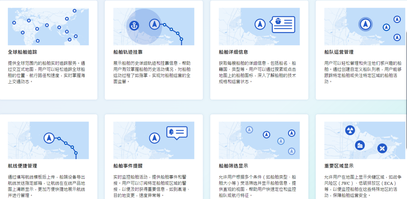 用户可以通过交互式地图追踪船舶的位置、航行路径和速度。