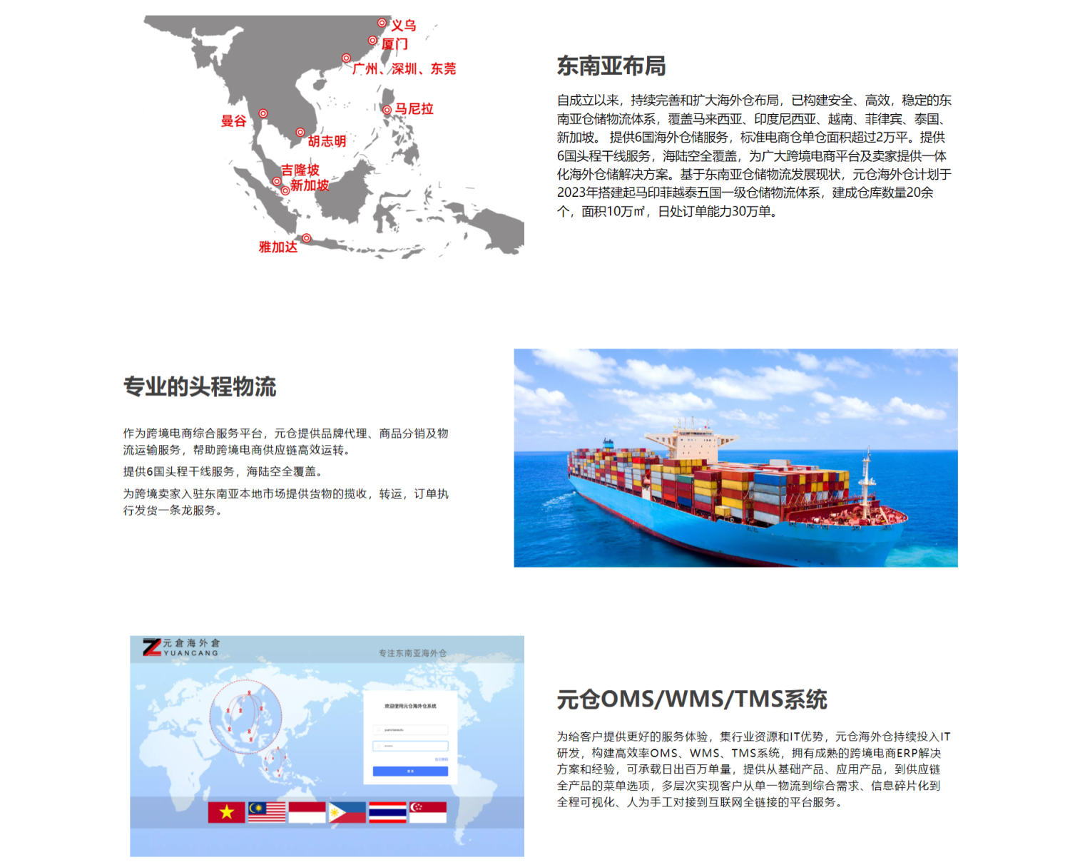 元仓海外仓是深圳市元巢物流科技有限公司旗下的专业仓储品牌,其核心管理团队拥有逾十年的跨境电商仓储管理经验。总部位于深圳华南城,元仓已经成功完成了3轮融资,建设了国内集货中转仓、跨境直发仓,以及在越南、印尼、马来西亚、菲律宾、泰国和新加坡等地设立了仓储物流配套服务。
