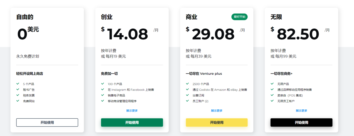 商业版:包含2500个产品、出售订阅以及员工账户等功能。
