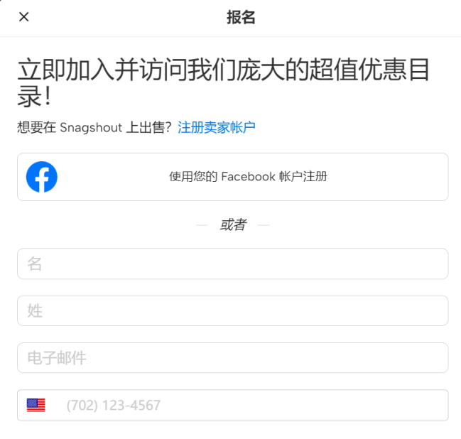 1.注册Snagshout账户并登录:注册账户时需要提供一些个人的信息,以验证卖家身份;