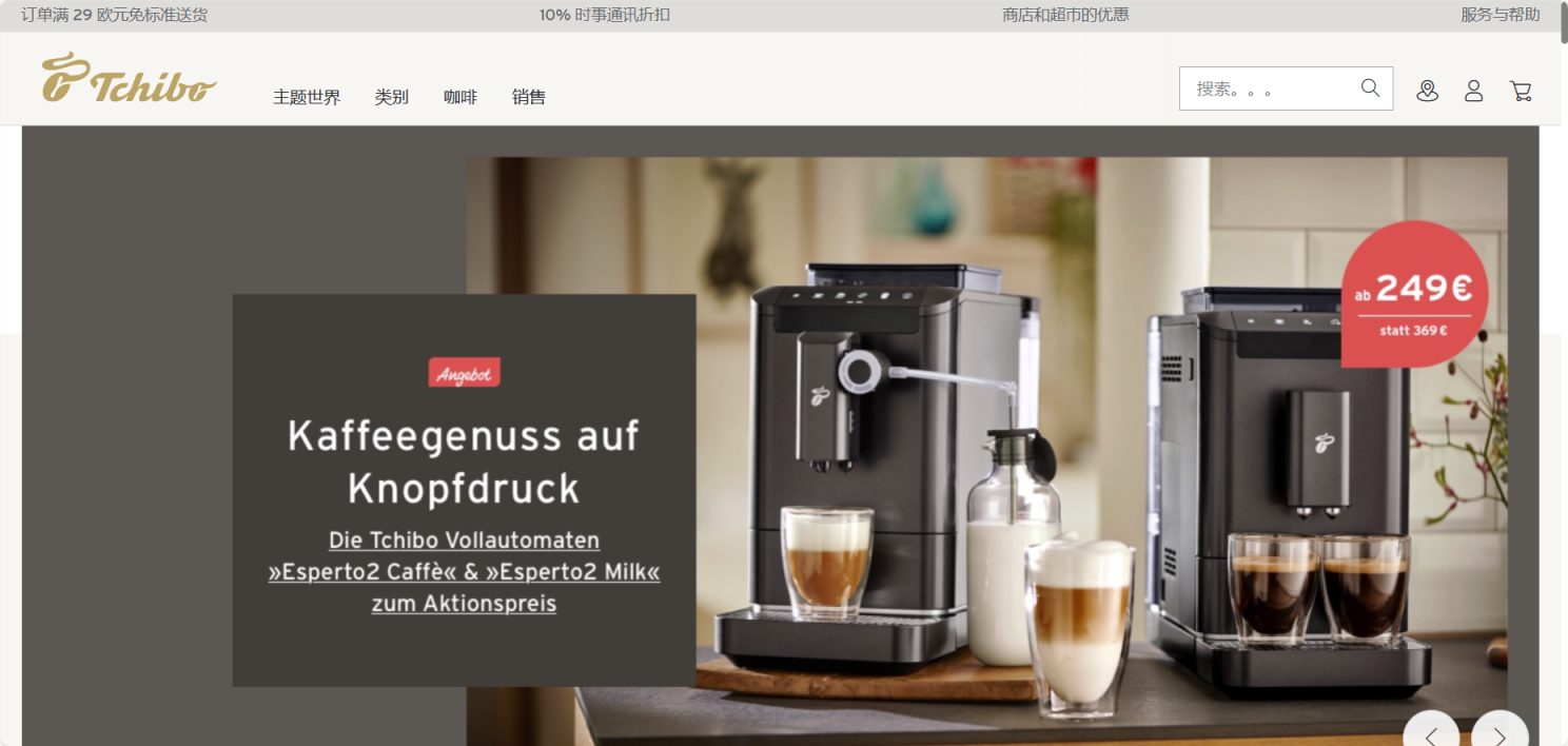 购买咖啡及相关产品:用户可以在Tchibo网站上购买到高质量的咖啡豆、咖啡粉、咖啡机等咖啡相关产品,满足日常饮用或送礼等需求。