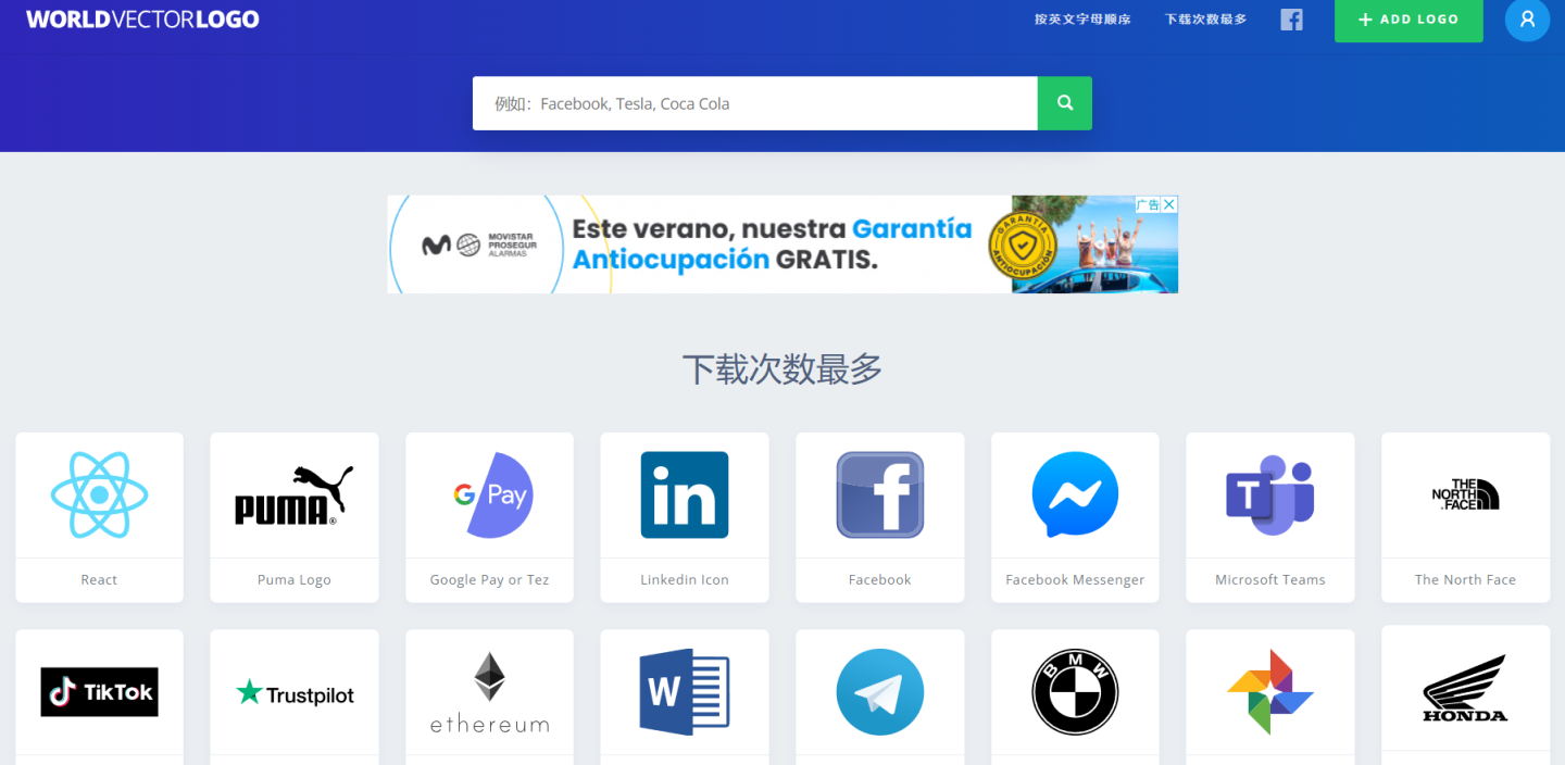 多语言搜索功能:尽管网站主要以英文为主,但用户仍可以通过品牌名用不同的语言进行搜索,从而找到所需的Logo矢量图。