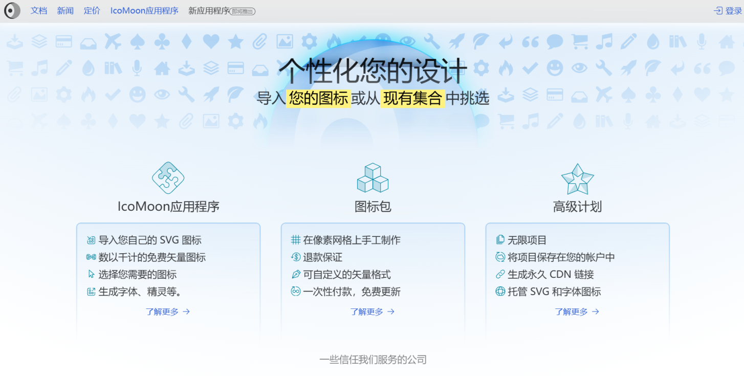 个性化图标库:用户可以创建完全个性化的图标库,只包含所需的图标,从而减少最终用户下载的体积。