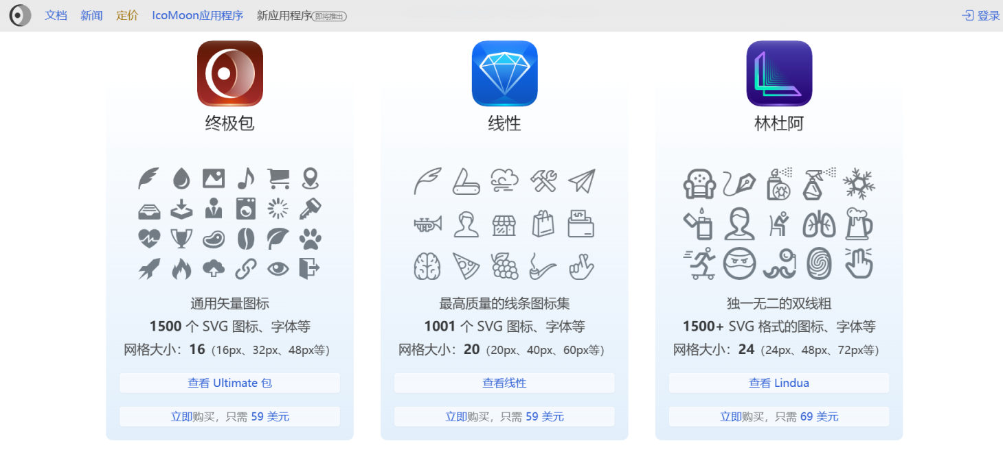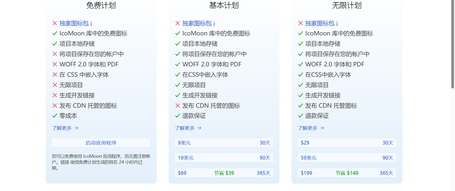 IcoMoon推出了免费计划、基本计划、无限计划、终极包、线性、林杜阿。