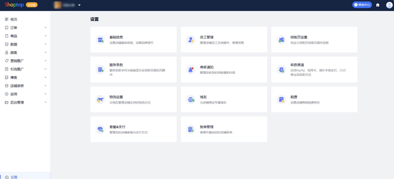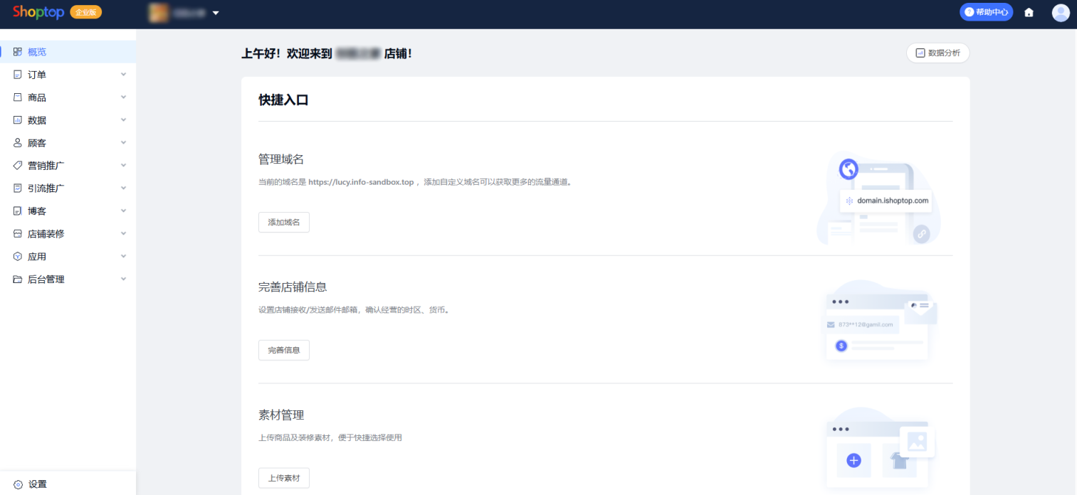 shoptop 建站后台预览: