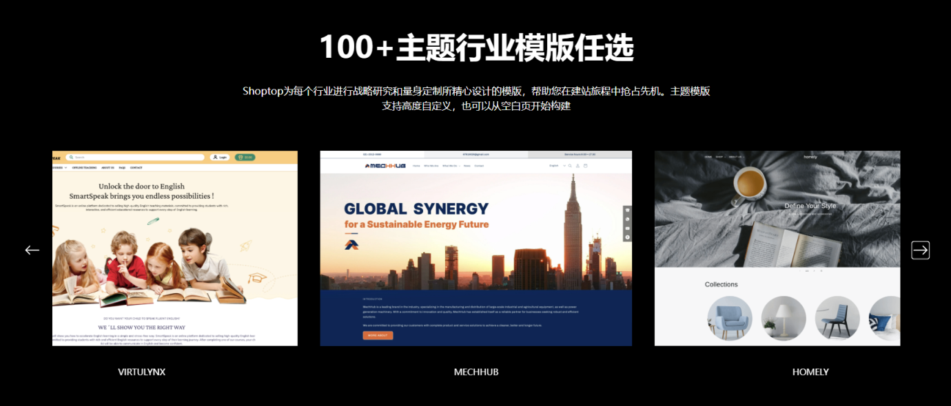 Shoptop的核心团队创立于2010年,初期主要提供海外全媒体数字化营销服务,在积累丰富客户服务经验的基础上,Shoptop 应运而生,依托强大的企业级架构 SaaS 技术,专注提供出海一站式独立站建站解决方案。