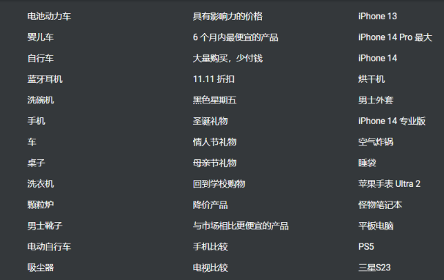 下图为Akakçe 平台上提供的部分商品种类以及比价服务,可以看到Akakçe 平台上商品种类众多,而且平台会很根据不同节日、不同产品进行产品价格归类,提供丰富的优惠产品目录,为用户提供良好的购物体验。