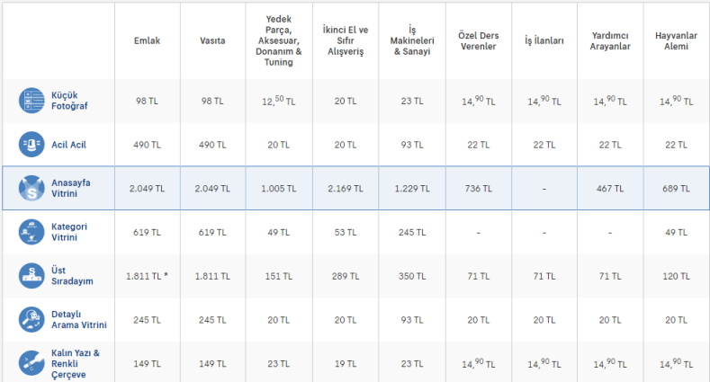 sahibinden作为一个电子商务以及广告平台会提供丰富的产品广告推广服务。商家可以选择购买不同的广告服务去更好地展示自己的产品。