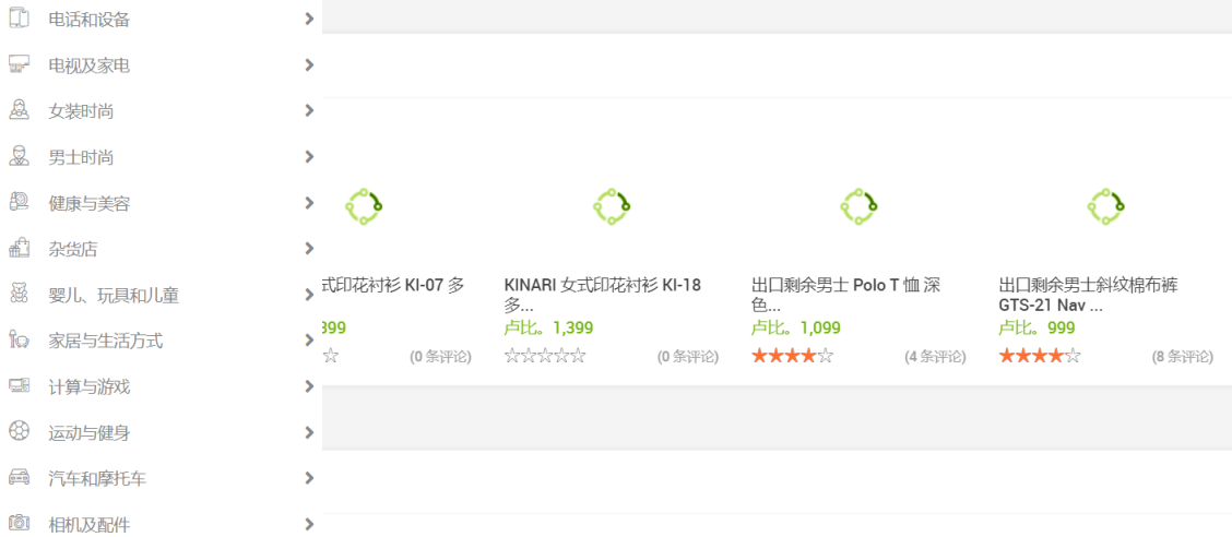 智能手机、LED 电视、智能电视、小厨房电器、冰箱和冰柜、时尚女装、男士时尚、杂货、健康与美容、婴儿及儿童玩具、家居与生活方式、计算与游戏、数码相机、监控摄像头、无人机相机、运动与健身、健身和智能手表、冷却和空气处理、吸尘器、男士 T 恤、婴儿和男孩服装、婴儿及女童服装等。