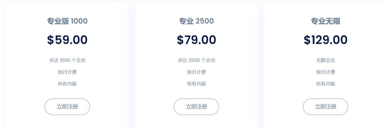 Affiliatly设置了多档定价,几乎可以满足您的一切需求。每档定价包含的功能都相同,都是按月计费,但会员数量不同。