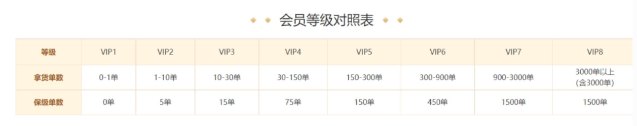 会员等级取决于结算周期(1个月)内交易完成订单数。