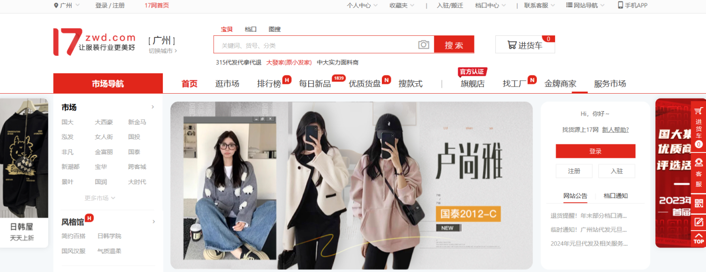 17货源(又名为17网)是一个专业的网批货源平台,目前已开发广州、潮汕、杭州、新塘、揭阳、白沟、株洲、花都、葫芦岛、