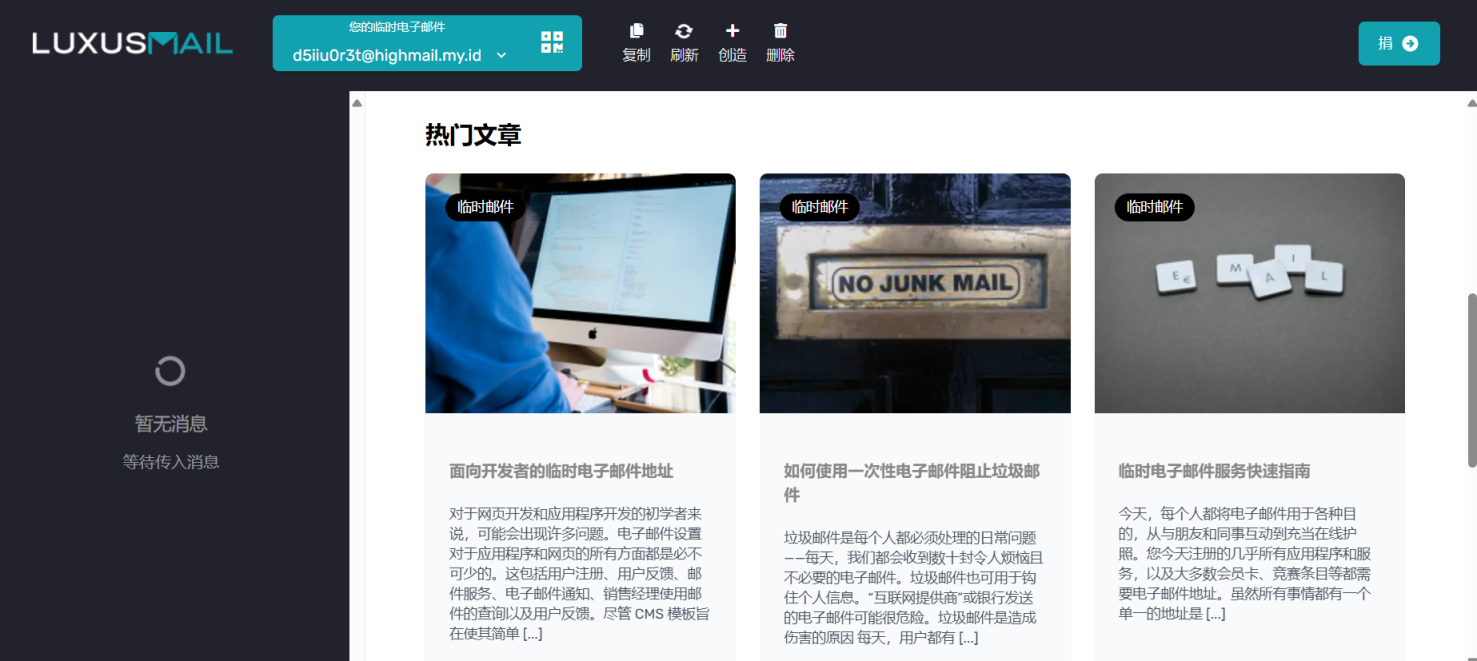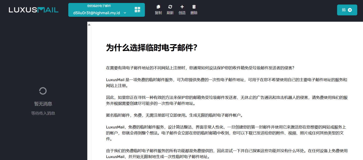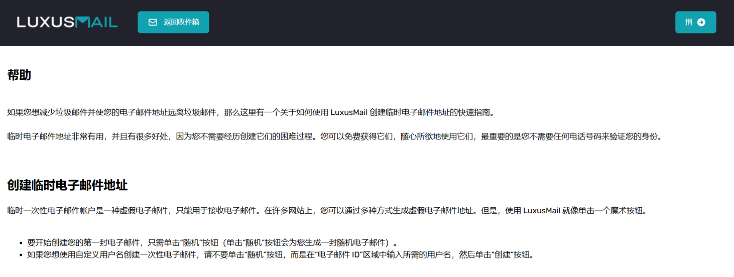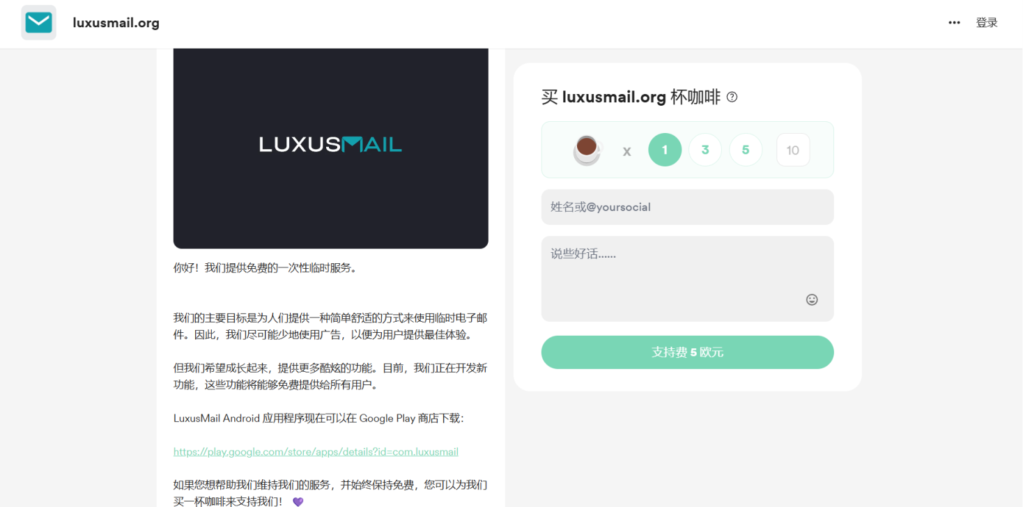 Luxus Mail提供免费的一次性临时服务。不过可以为我们买一杯咖啡来支持Luxus Mail。
