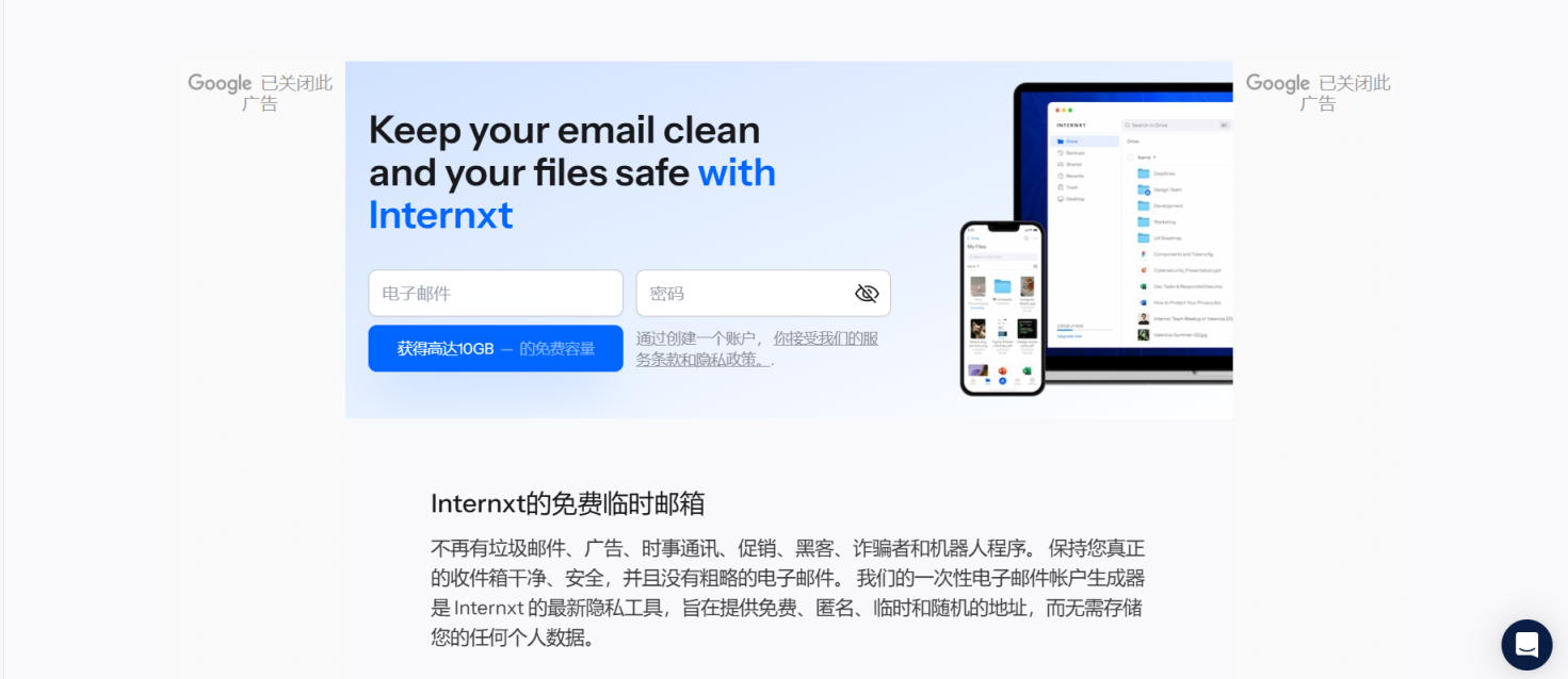 免费使用:Internxt的临时邮箱服务是免费的,用户可以在不支付任何费用的情况下享受这一隐私保护服务。