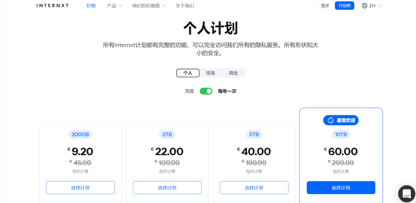 Internxt的定价